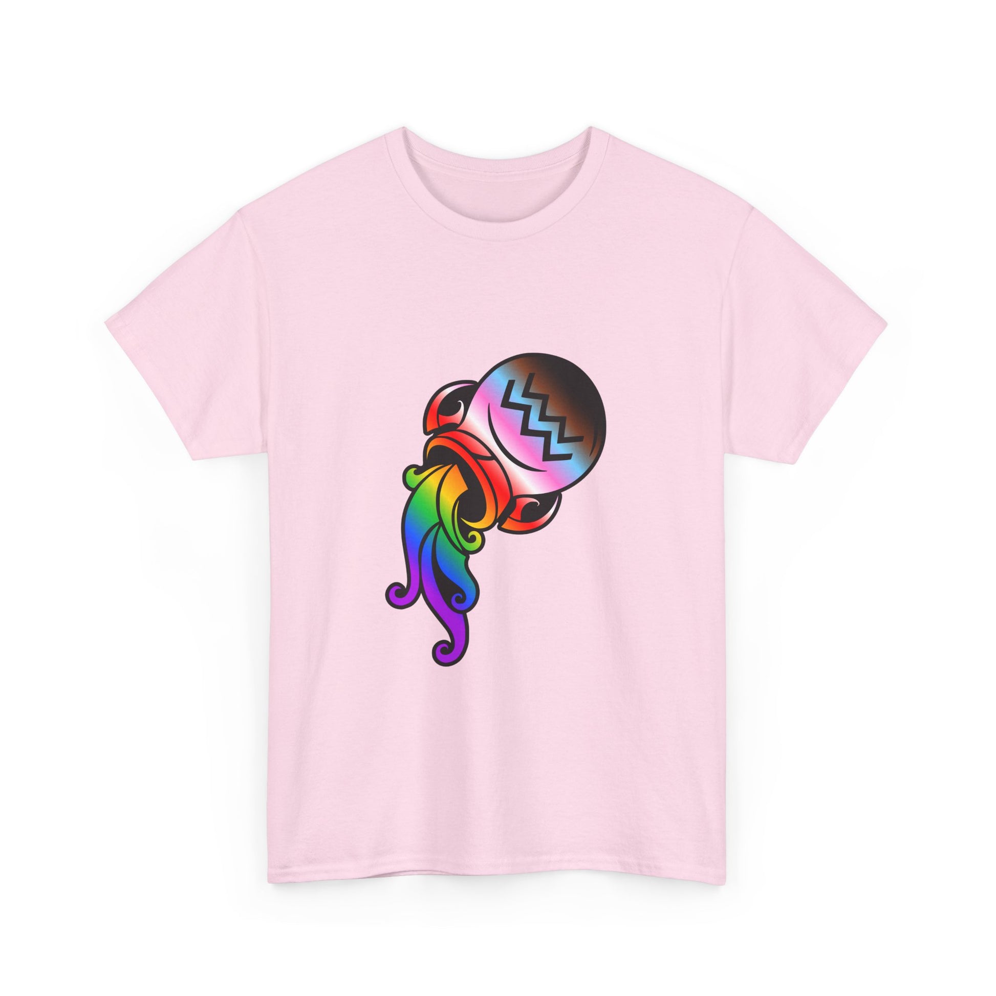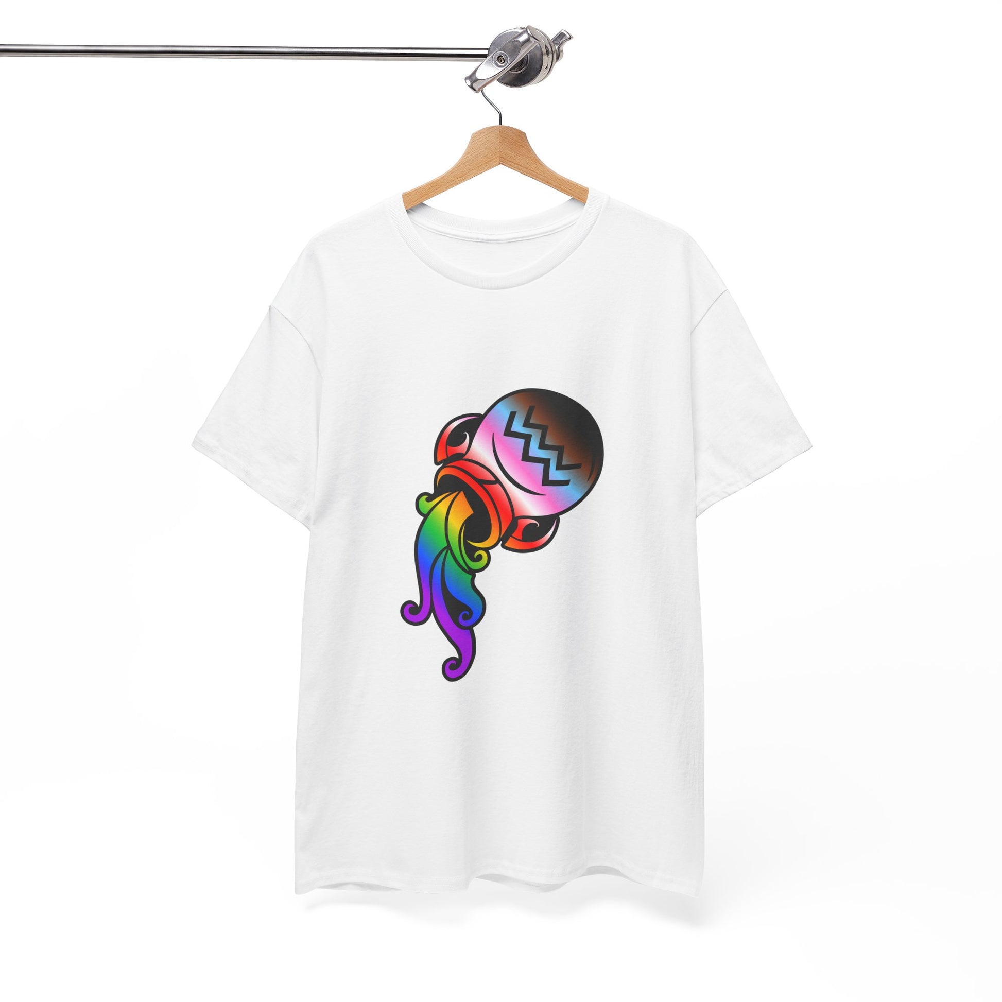 Aquarius Zodiac Heavy Cotton Tee | Unisex Astrology Shirt, Progress Pride Flag Colors, Image Only