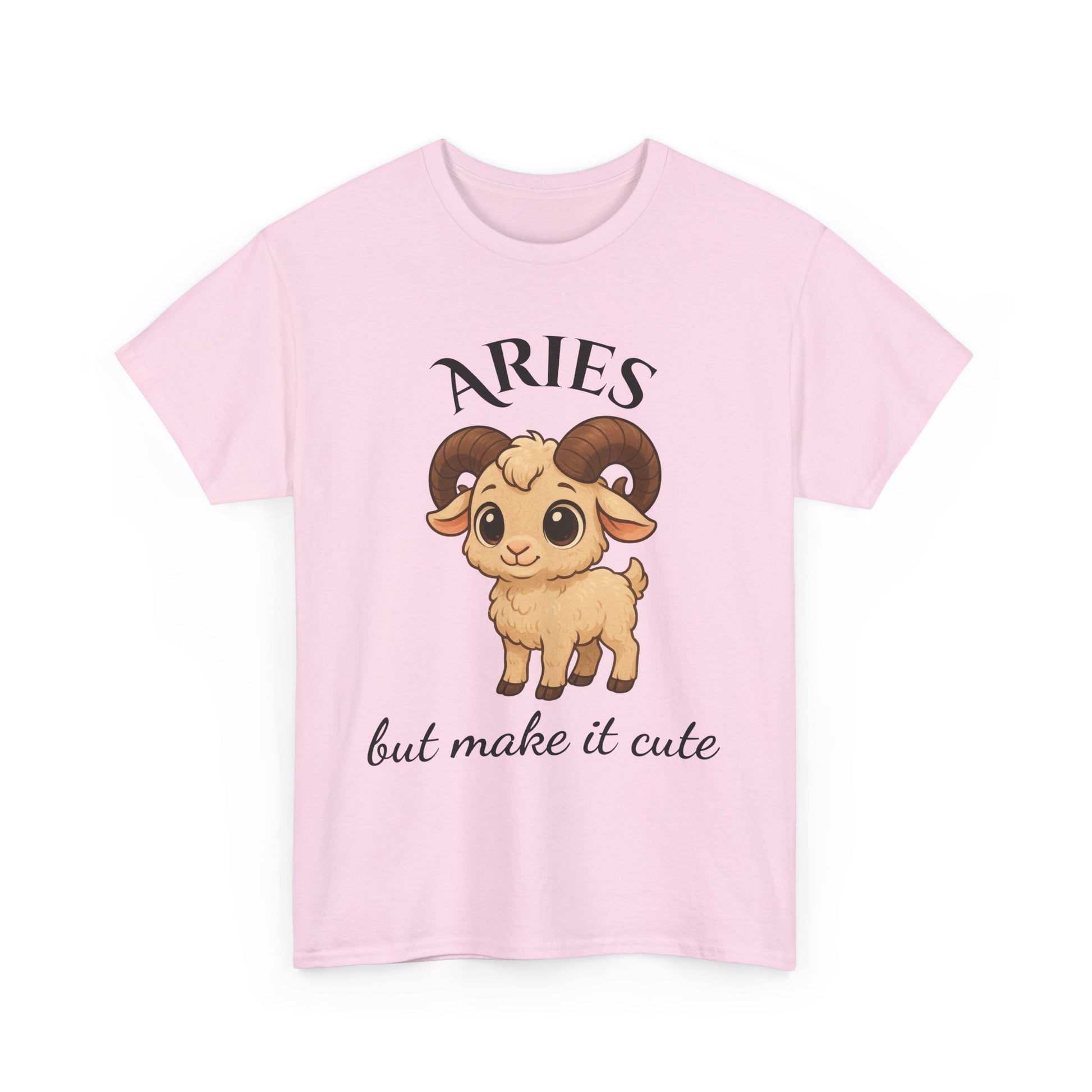 Turn up the charm with this adorable Aries zodiac t-shirt! Featuring a cute cartoon ram and the playful slogan βAries but Make It Cuteβ, this tee perfectly captures Ariesβs bold, fiery energy with a sweet and stylish twist.