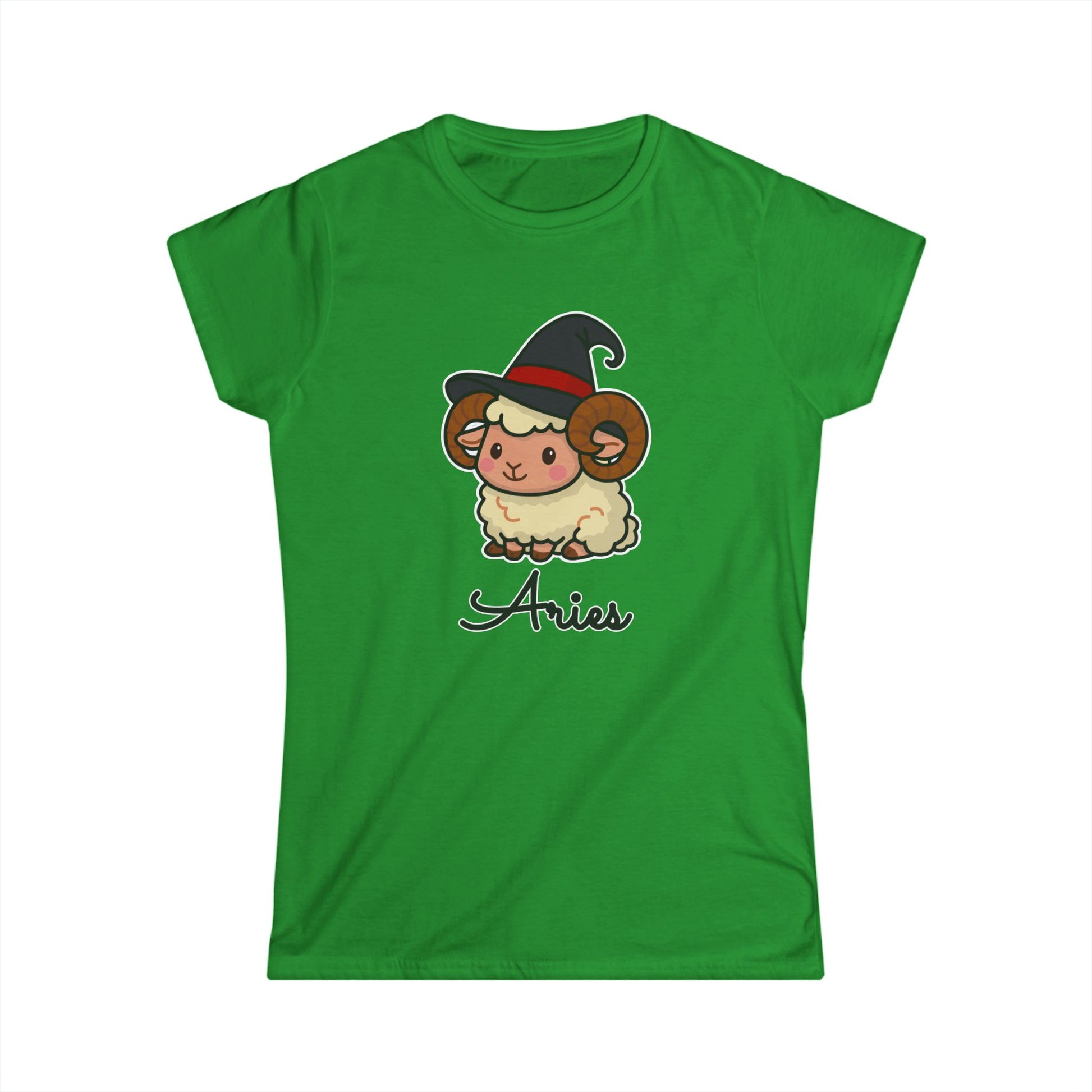 Celebrate your unique style with this charming Women's Softstyle Tee, perfect for those who embrace their zodiac sign. Featuring a playful design that showcases the Aries sheep adorned with a witch's hat, this tee exudes a fun and whimsical vibe. Ideal for casual outings, gatherings with friends, or relaxing at home, it makes a delightful addition to any wardrobe. This tee is perfect for astrology enthusiasts and those who appreciate cute, lighthearted fashion. Suitable for birthdays, Halloween, and everyday wear, it's a thoughtful gift for anyone who identifies with the Aries sign or loves quirky apparel.