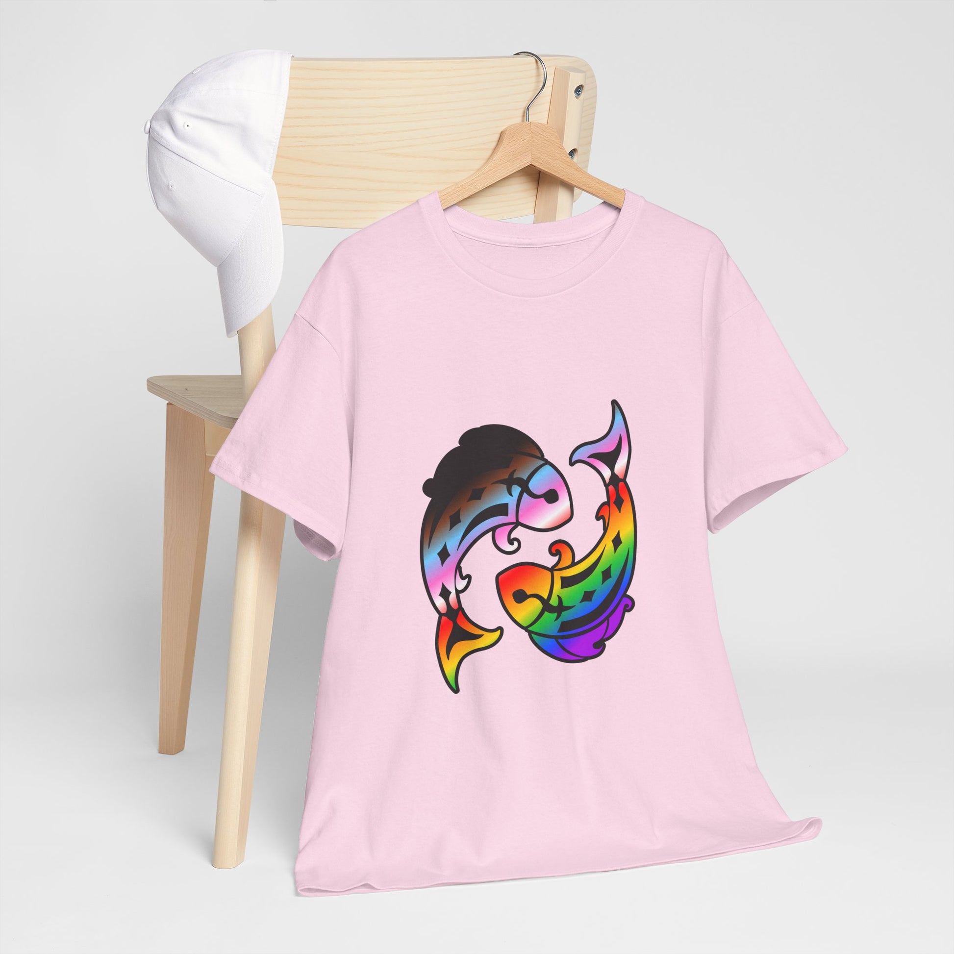 Pisces Zodiac Heavy Cotton Tee | Unisex Astrology Shirt, Progress Pride Flag Colors, Image Only