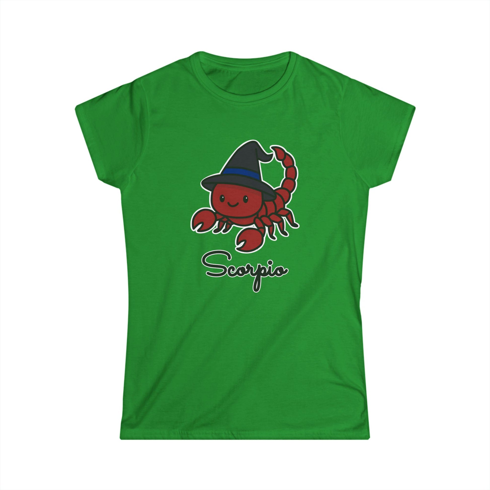 Celebrate your unique style with this charming Women's Softstyle Tee, perfect for those who embrace their zodiac sign. Featuring a playful design that showcases a cute cartoon scorpion wearing a witch's hat, this tee exudes a fun and whimsical vibe. Ideal for casual outings, gatherings with friends, or relaxing at home, it makes a delightful addition to any wardrobe. This tee is perfect for astrology enthusiasts and those who appreciate cute, lighthearted fashion. Suitable for birthdays, Halloween, and everyday wear, it's a thoughtful gift for anyone who identifies with the Scorpio sign or loves quirky apparel.