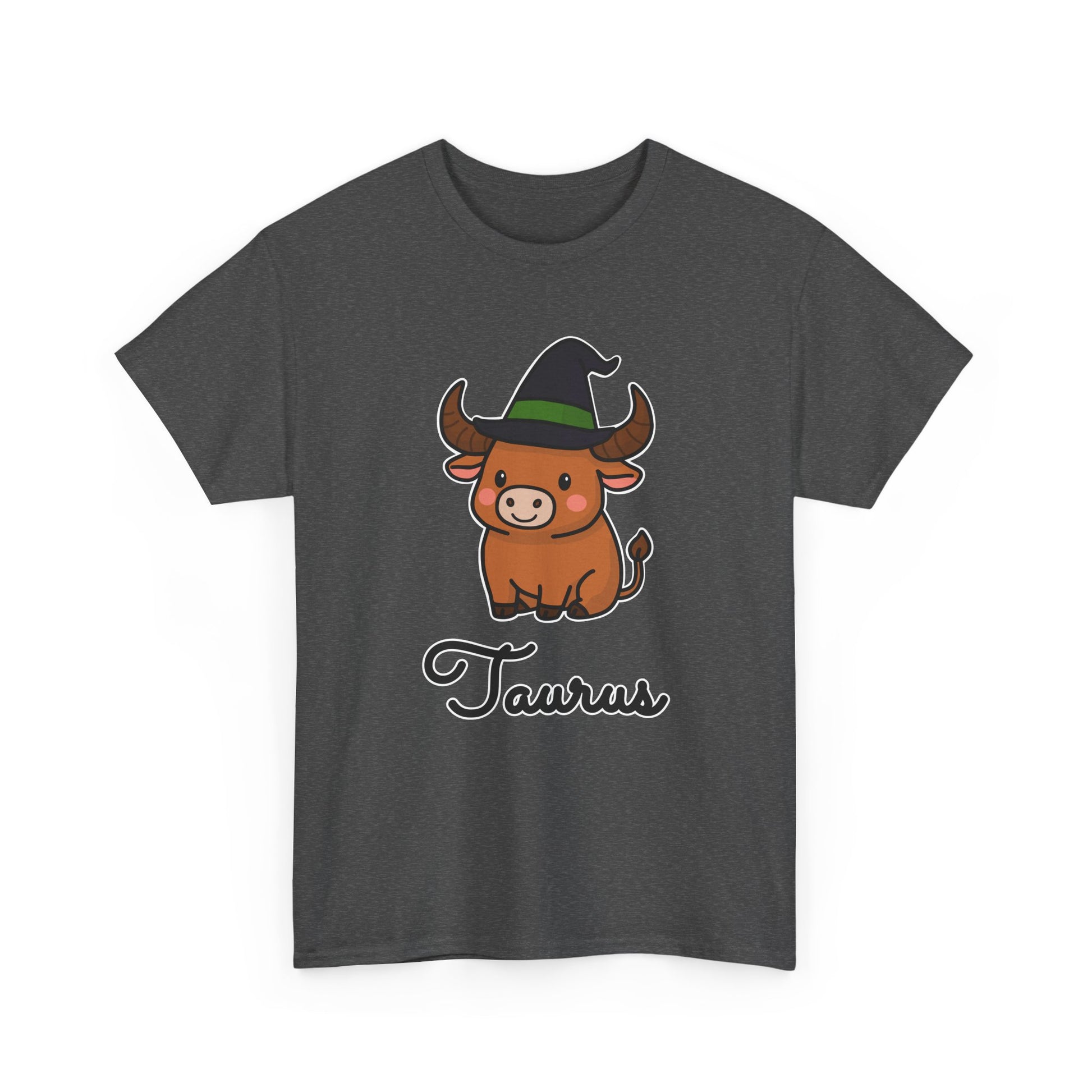 Bring your Taurus energy to life with this playful astrology graphic tee! Featuring an adorable cartoon bull rocking a witch’s hat and the bold caption Taurus, this shirt blends cosmic charm with a touch of magic.