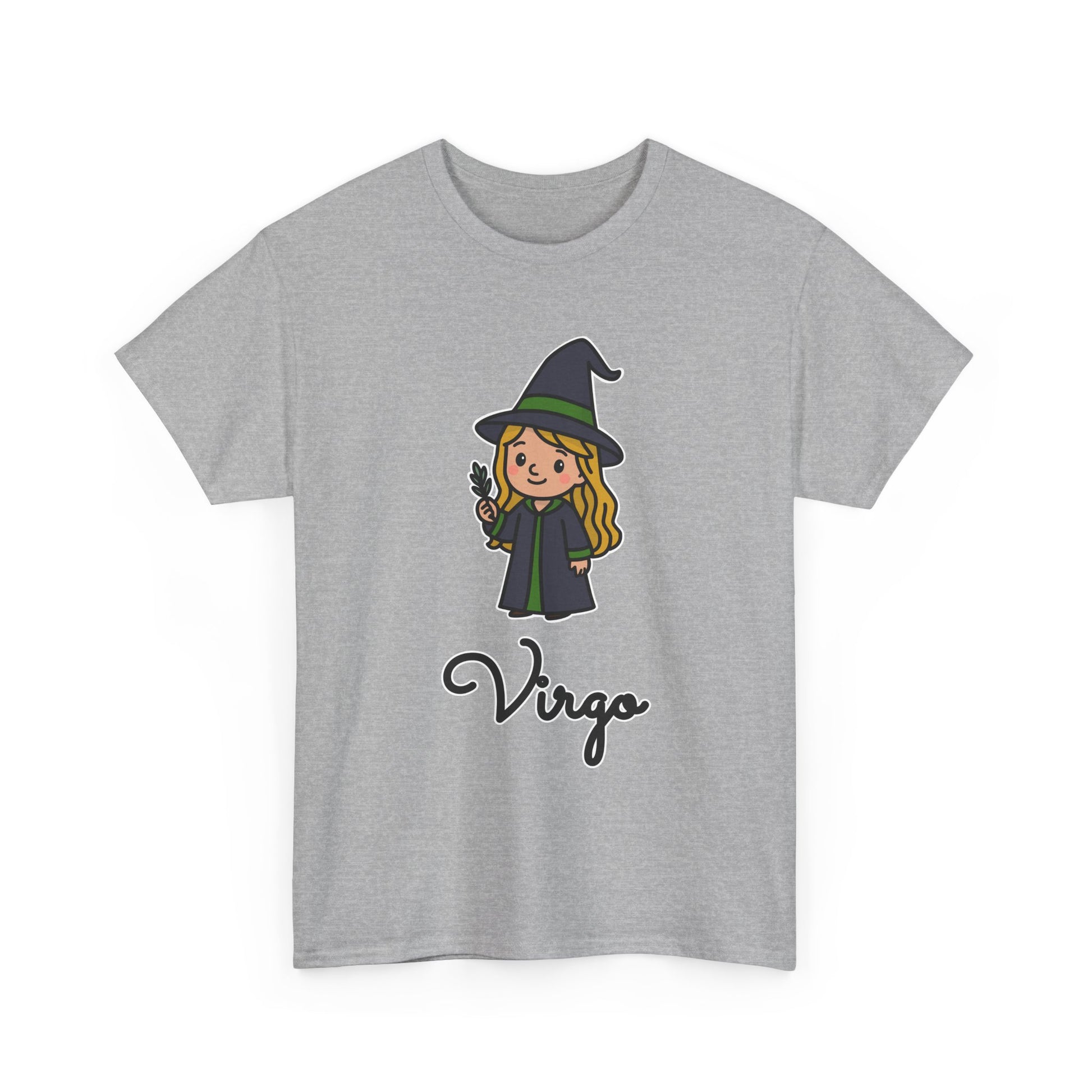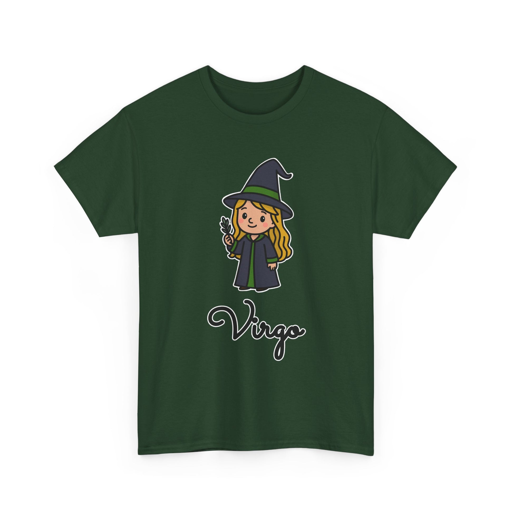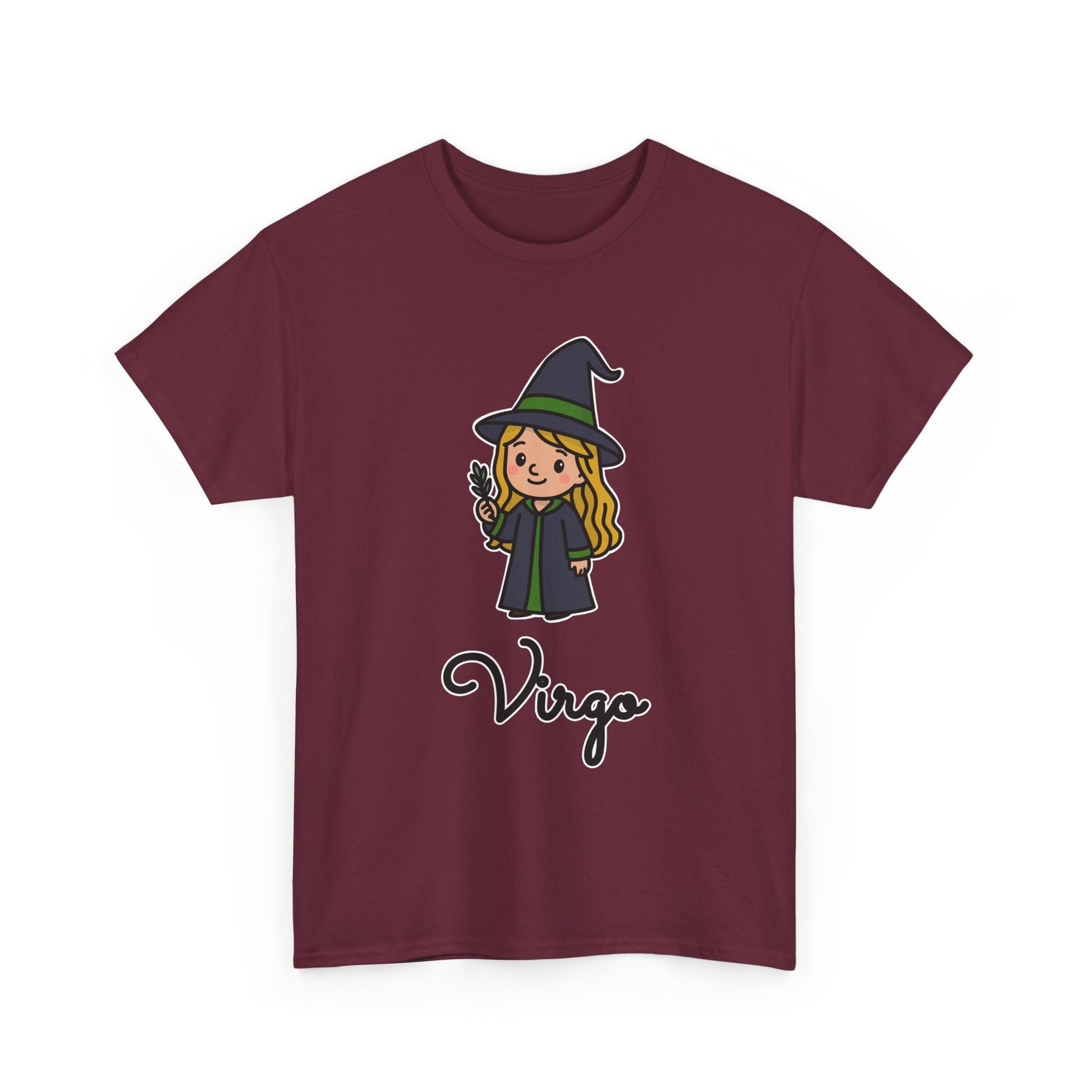 Bring your Virgo energy to life with this playful astrology graphic tee! Featuring an adorable cartoon girl rocking a witch's hat and the bold caption Virgo, this shirt blends cosmic charm with a touch of magic.